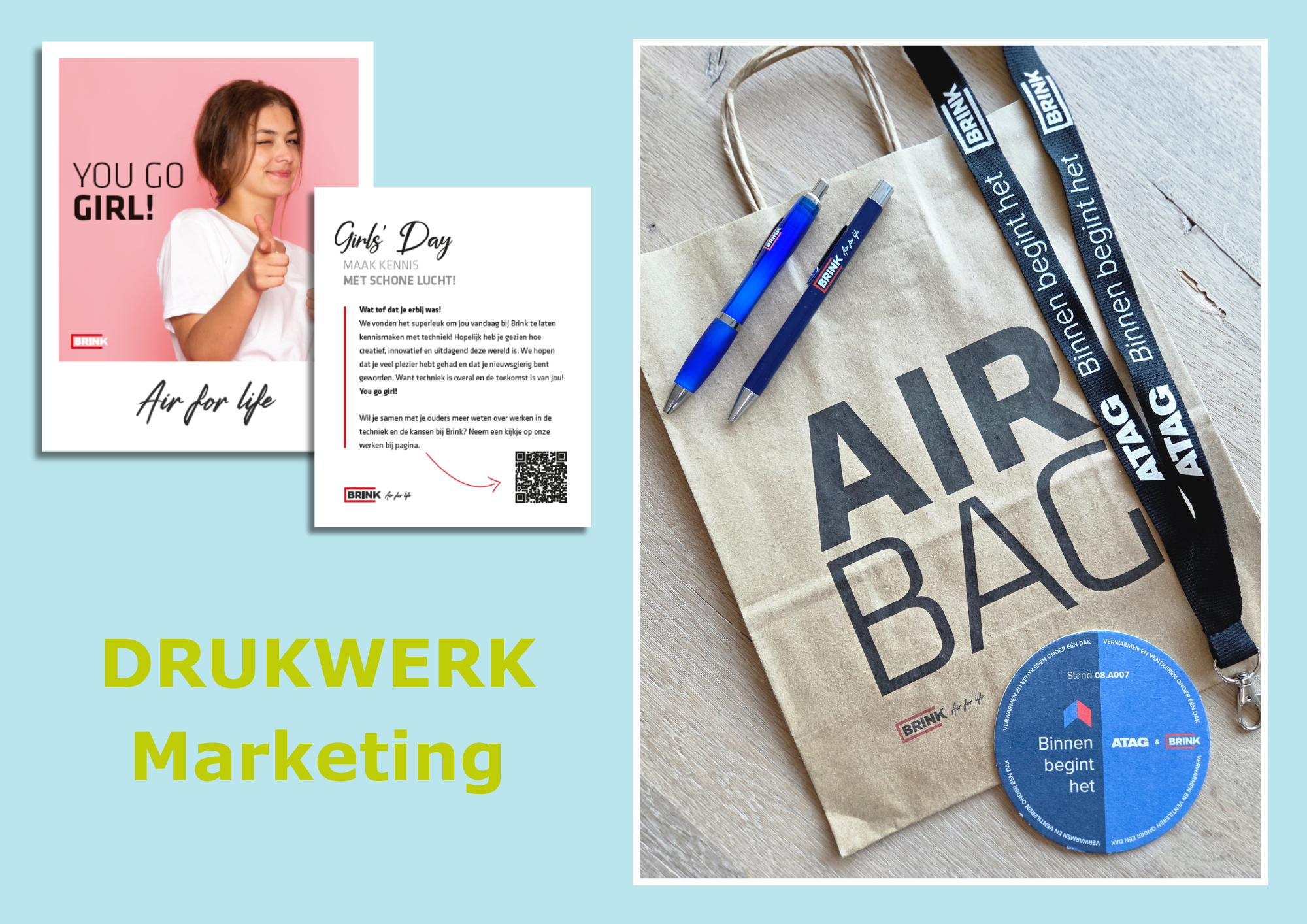 Brink Climate Systems wordt ontzorgd in een traject waar veel grafisch werk nodig is. Het grafische werk is goed geregeld, de kwaliteit wordt bewaakt en er kan snel worden geschakeld wanneer dat nodig is.
