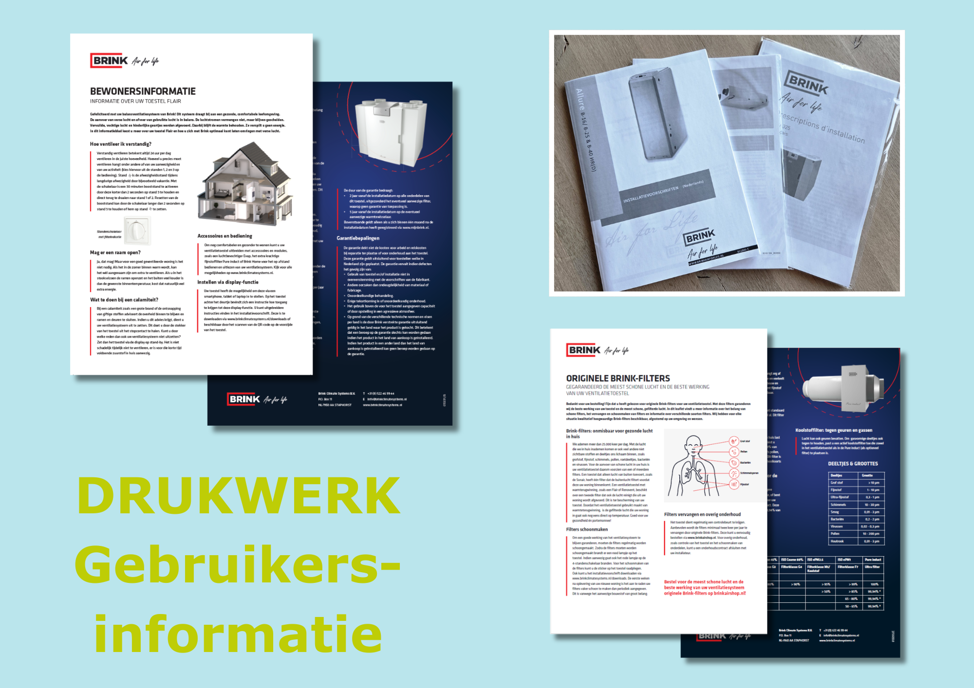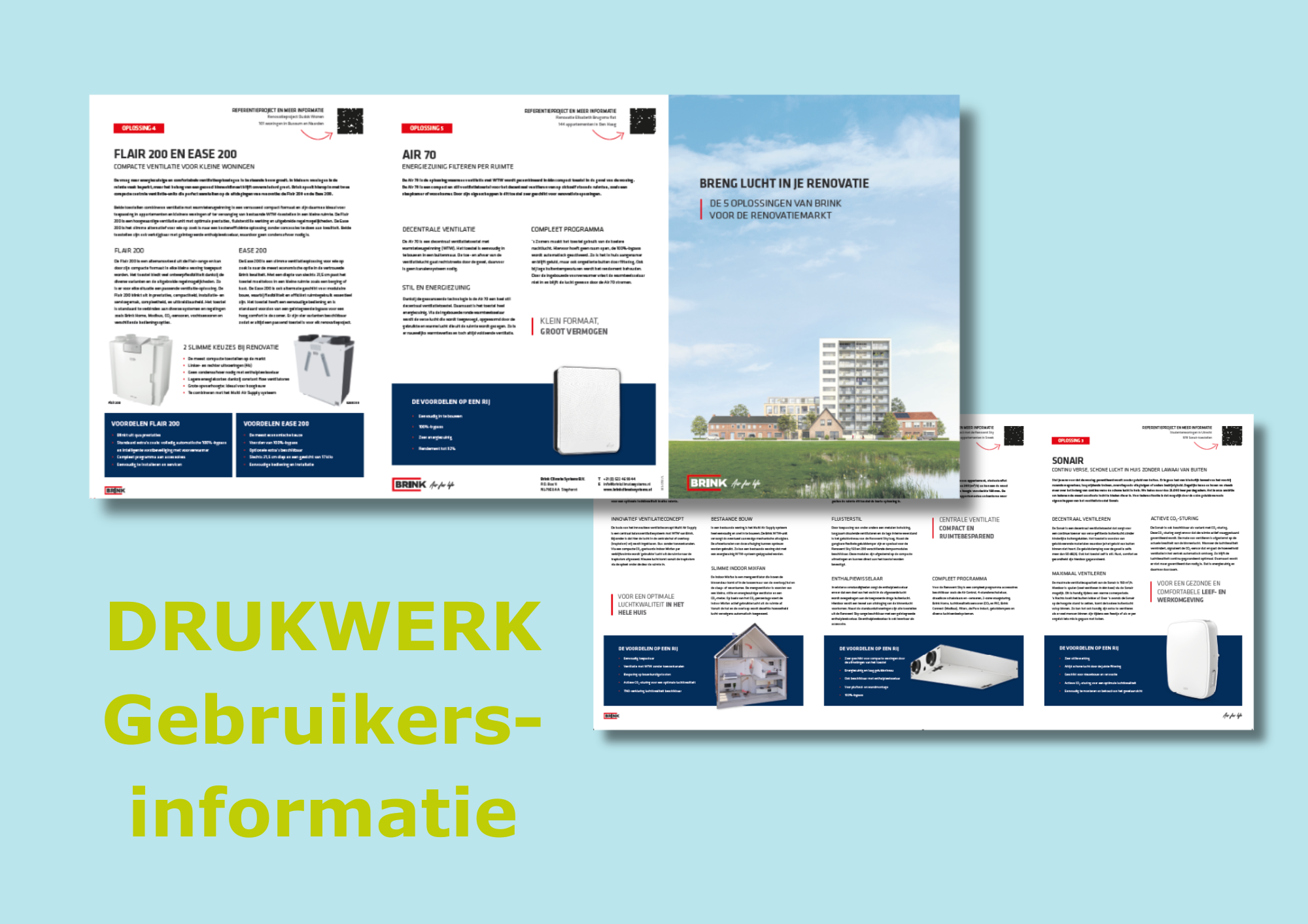 Voor Brink Climate Systems verzorgen we het grafische werk dat hoort bij verschillende klimaatoplossingen voor onder meer ventilatie, luchtverwarming en koeling. Dat vraagt om overzicht, afstemming en oog voor detail. Juist daarin ontzorgen we: we houden de lijn vast, schakelen snel en zorgen dat alles klopt voordat het wordt ingezet.